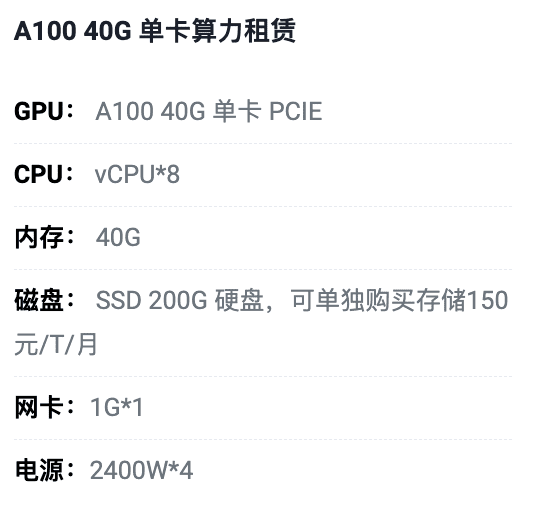 张家口A100-40G单卡租用价格