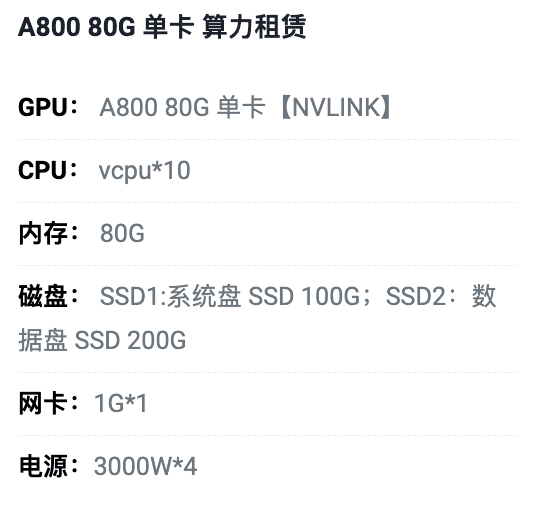 张家口A800-80G单卡租用价格